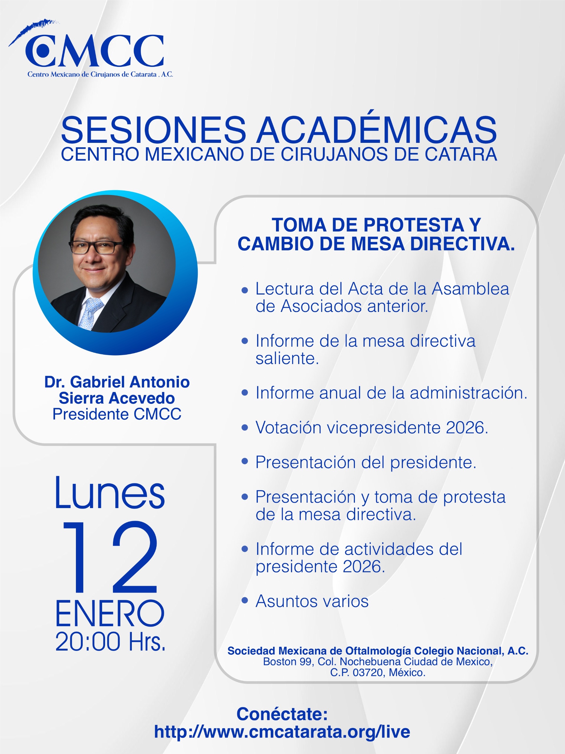 Sesión del Centro Mexicano de Cirujanos de catarata. Transmitido el 12 de enero del 2026 desde la Sociedad Mexicana de OftalmologÃa.